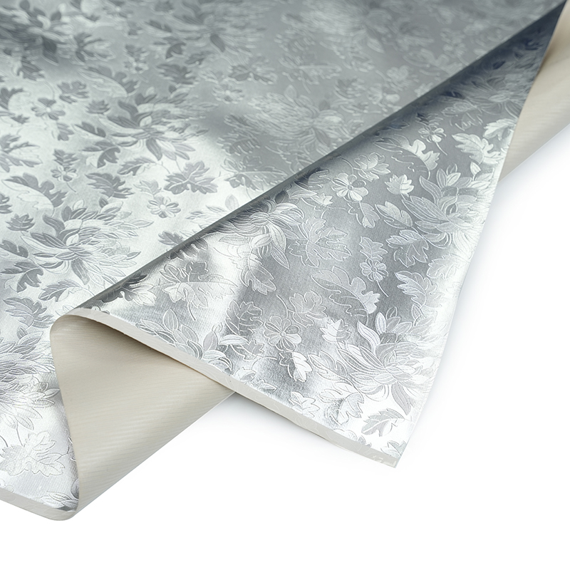 รูปแบบของผู้ติดตามหนังสีเงินส่วนใหญ่ประกอบด้วยวัสดุสังเคราะห์คุณภาพสูงออกแบบมาอย่างระมัดระวังเพื่อเลียนแบบรูปลักษณ์ที่หรูหราของเงิน รูปแบบผู้ติดตามที่สลับซับซ้อนช่วยเพิ่มเสน่ห์ของภาพสร้างพื้นผิวที่เป็นเอกลักษณ์และสะดุดตา ทางเลือกของวัสดุนี้นำเสนอทางเลือกที่ปราศจากความโหดร้ายสำหรับหนังแท้ในขณะที่ยังคงความซับซ้อนในระดับสูง